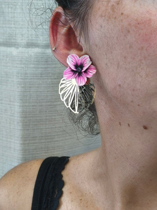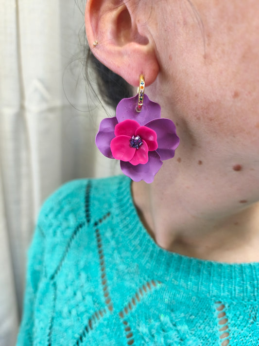 14- boucles d'oreilles jardin fleuri mauve creole
