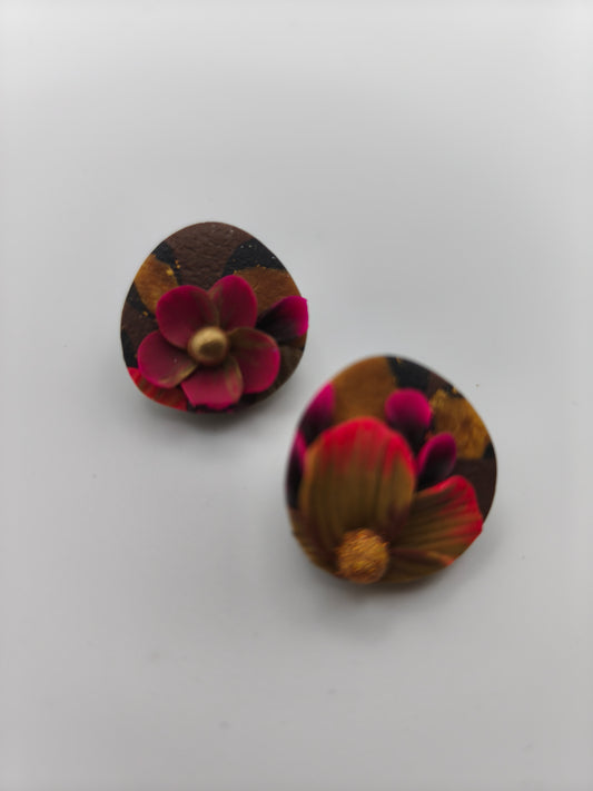 35 A- Boucles d'oreilles fleur rose