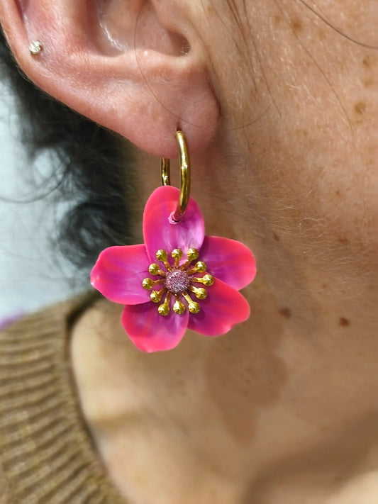 Boucles d'oreilles Créole fleur rose