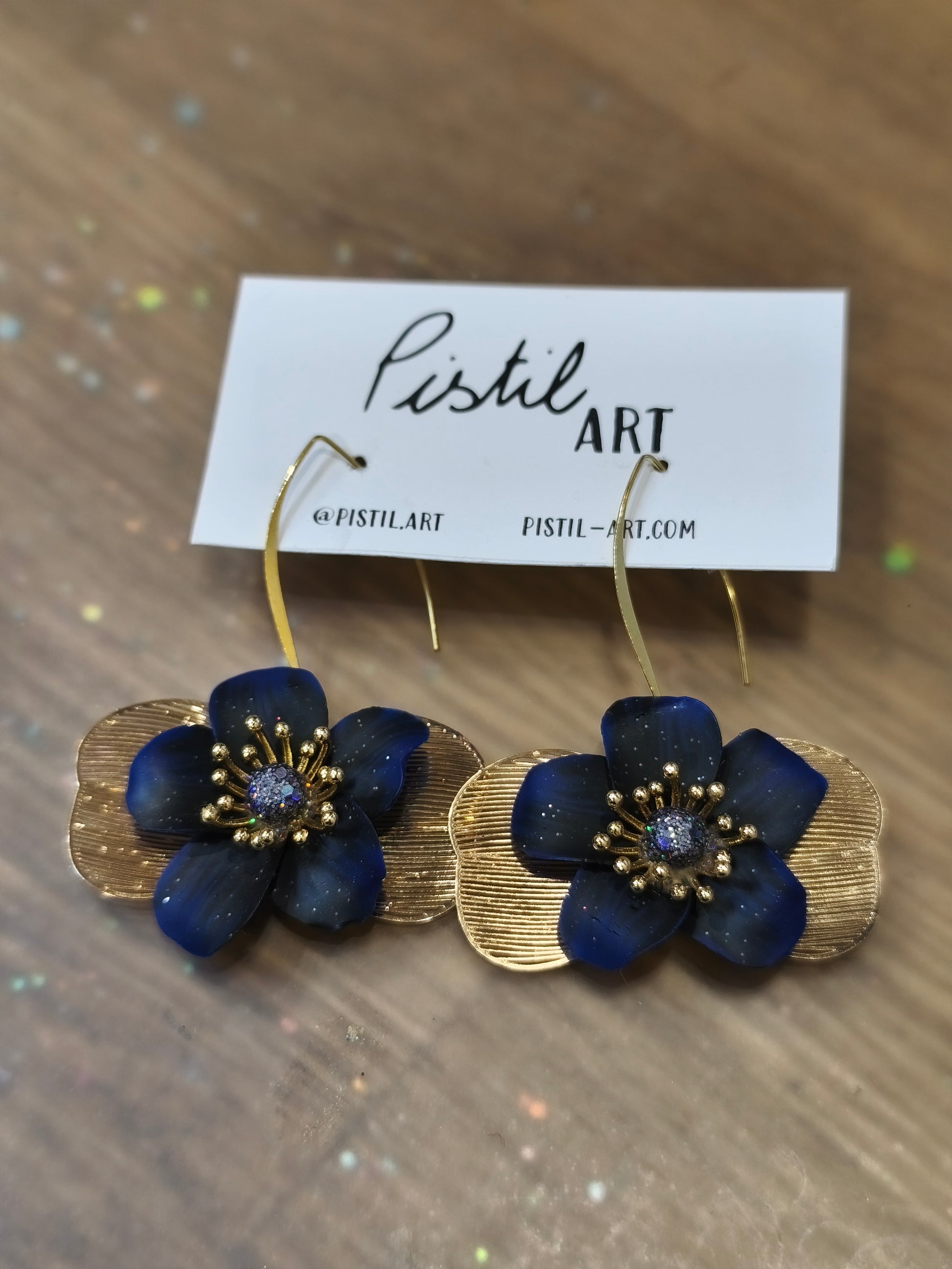 Des fleurs qui ne fanent jamais, à porter fièrement aux oreilles. Modelées à la main dans les tond bleu. Elles attirent les regards sans en faire trop, et se marient aussi bien avec une tenue sobre qu'un look plus affirmé. Un bijou poétique et audacieux, pensé pour celles qui aiment sortir du cadre.