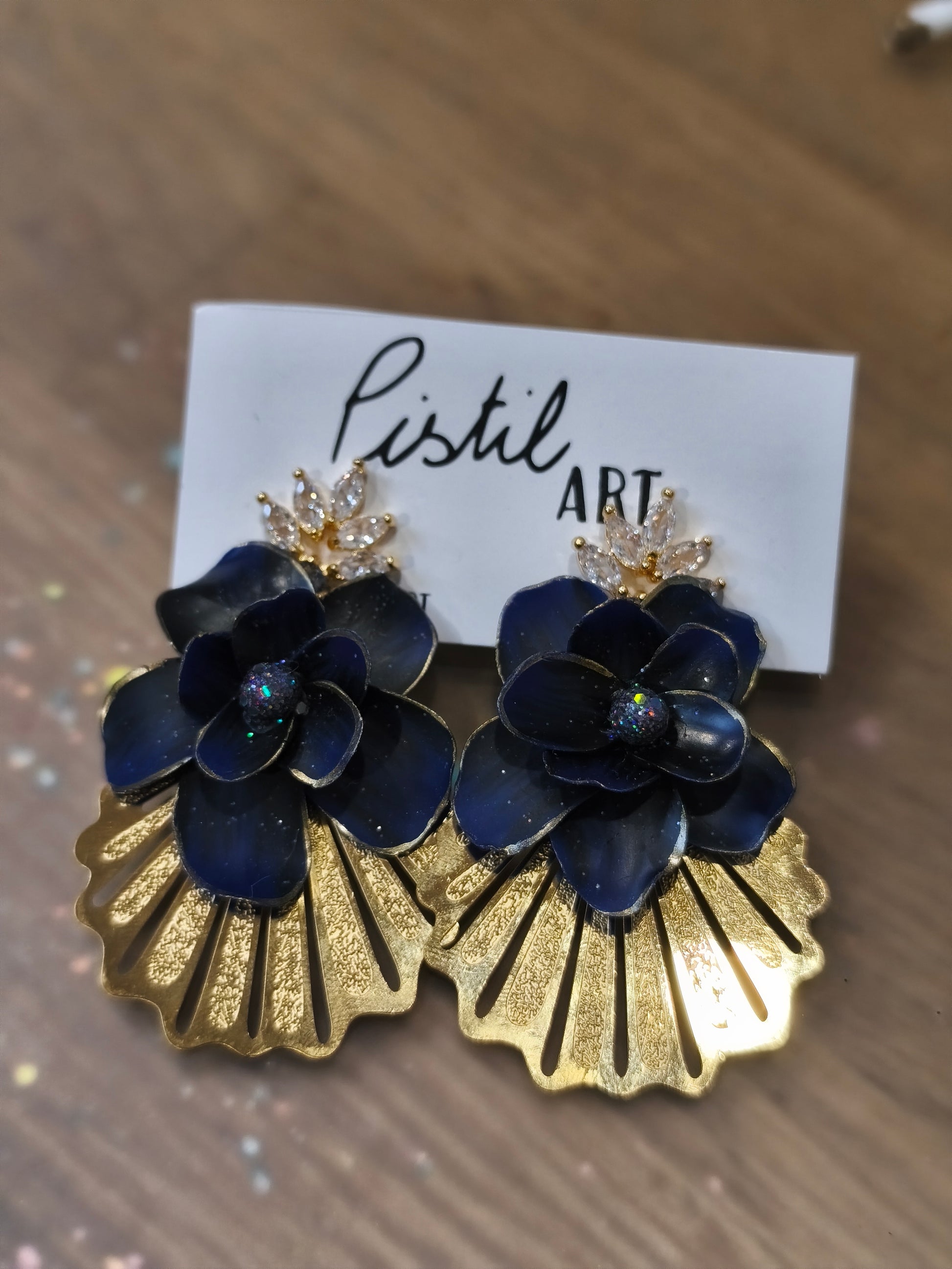Des fleurs qui ne fanent jamais, à porter fièrement aux oreilles. Modelées à la main dans les tons bleus. Elles attirent les regards sans en faire trop, et se marient aussi bien avec une tenue sobre qu'un look plus affirmé. Un bijou poétique et audacieux, pensé pour celles qui aiment sortir du cadre.