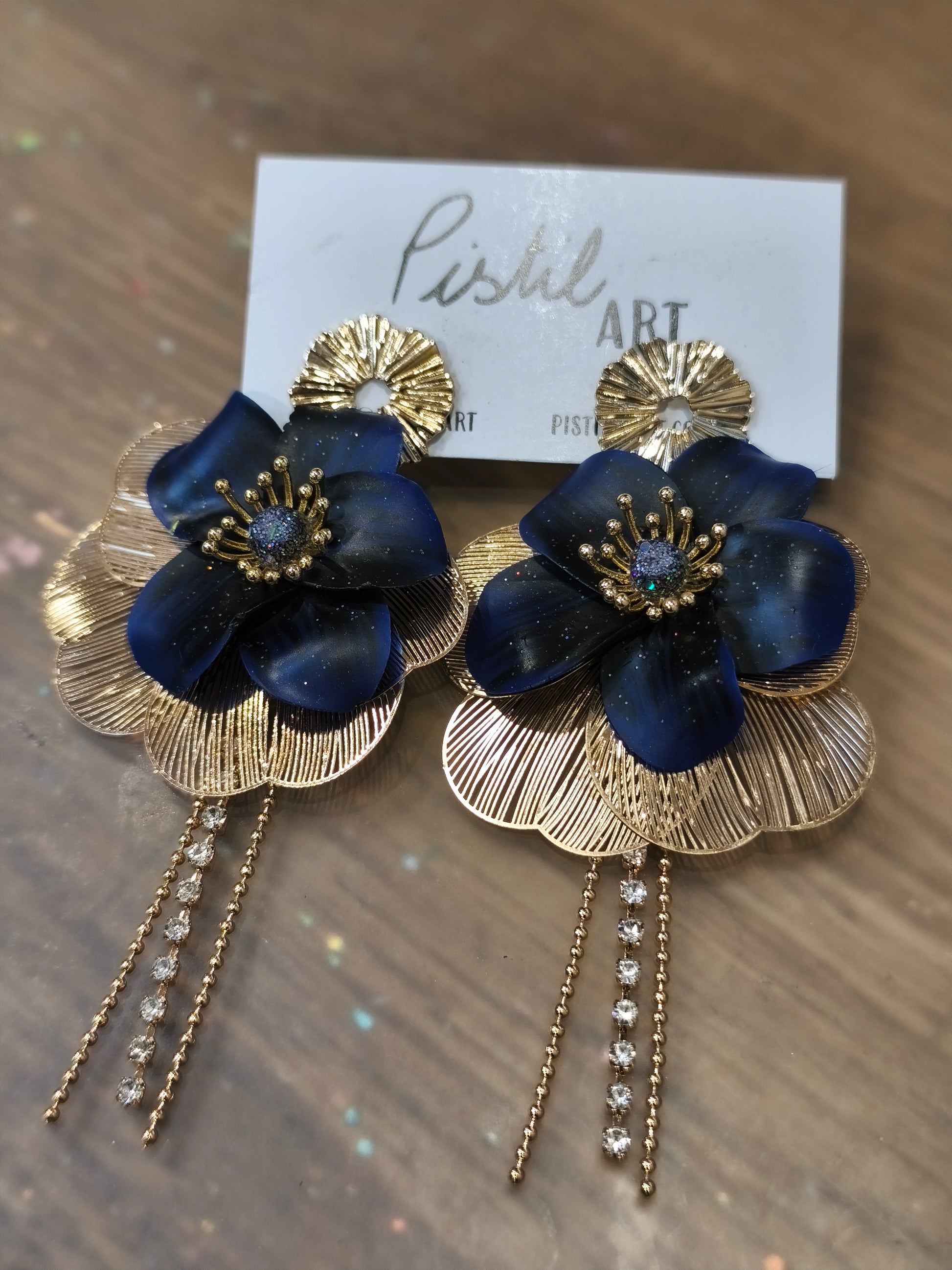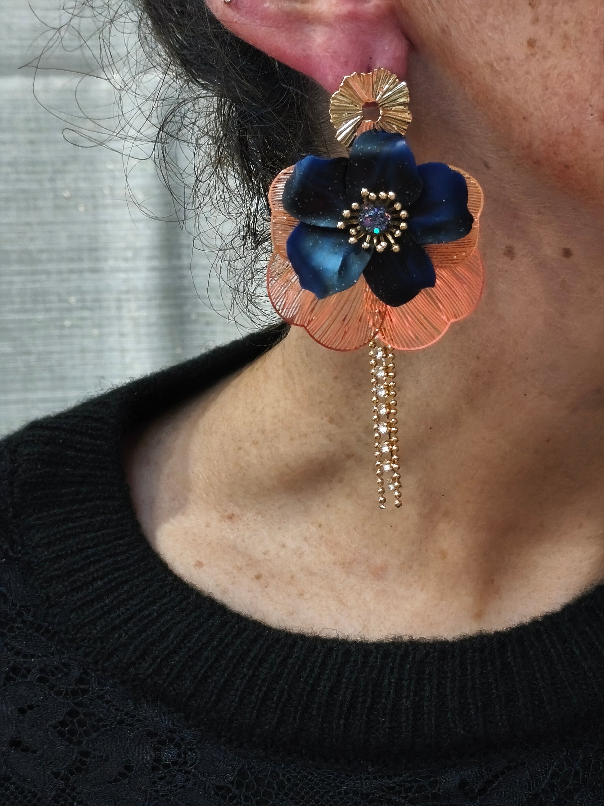 Des fleurs qui ne fanent jamais, à porter fièrement aux oreilles. Modelées à la main dans les tons bleus. Elles attirent les regards sans en faire trop, et se marient aussi bien avec une tenue sobre qu'un look plus affirmé. Un bijou poétique et audacieux, pensé pour celles qui aiment sortir du cadre.