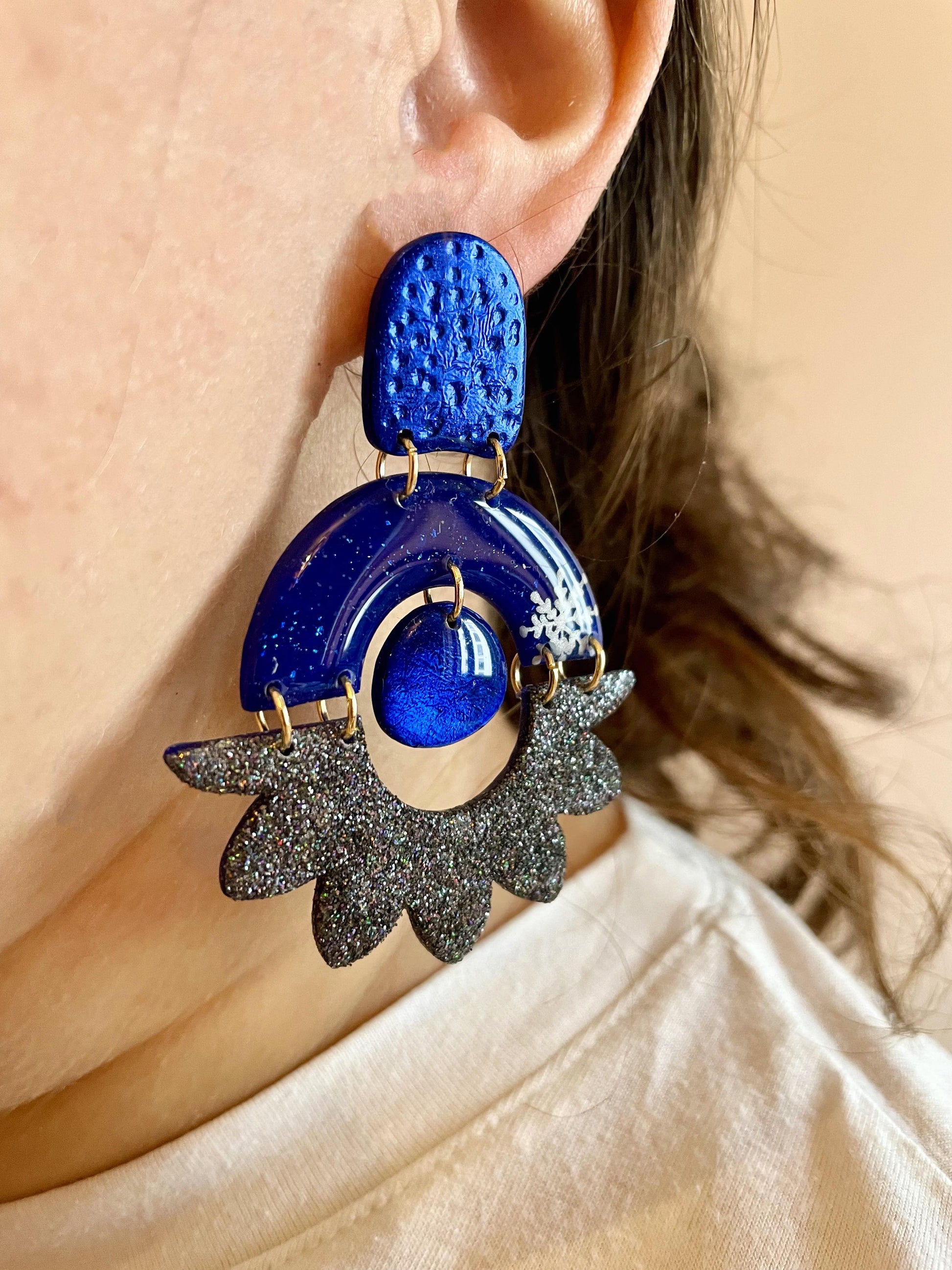 Ajoutez une touche de mystère et d'élégance à votre tenue avec les boucles d'oreilles Polar Night. Inspirées par la nuit polaire et ses éclats glacés, ces bijoux captivent par leur palette de bleus profonds, de blanc lumineux et de textures scintillantes rappelant la neige. Leur design audacieux et leur raffinement en font une pièce unique, parfaite pour illuminer vos soirées.