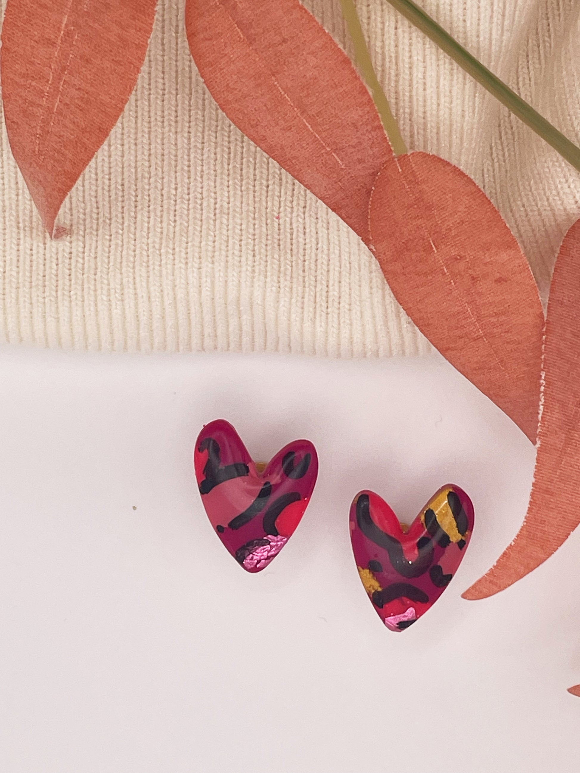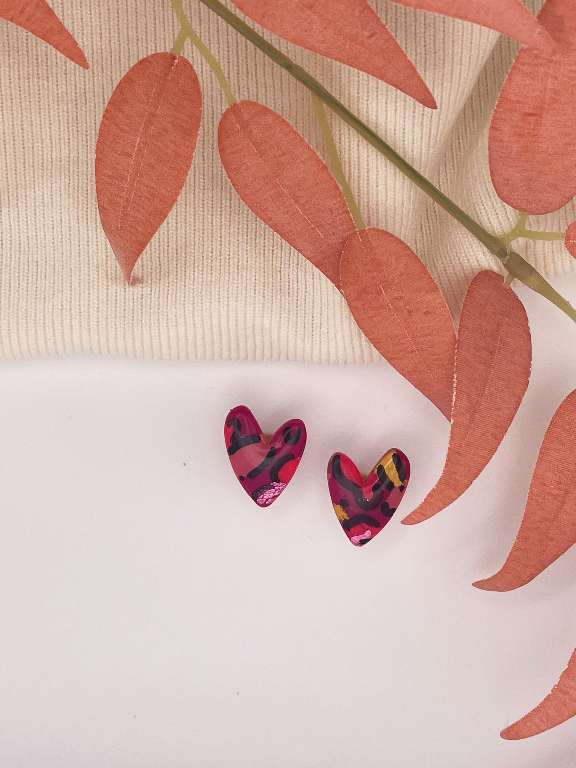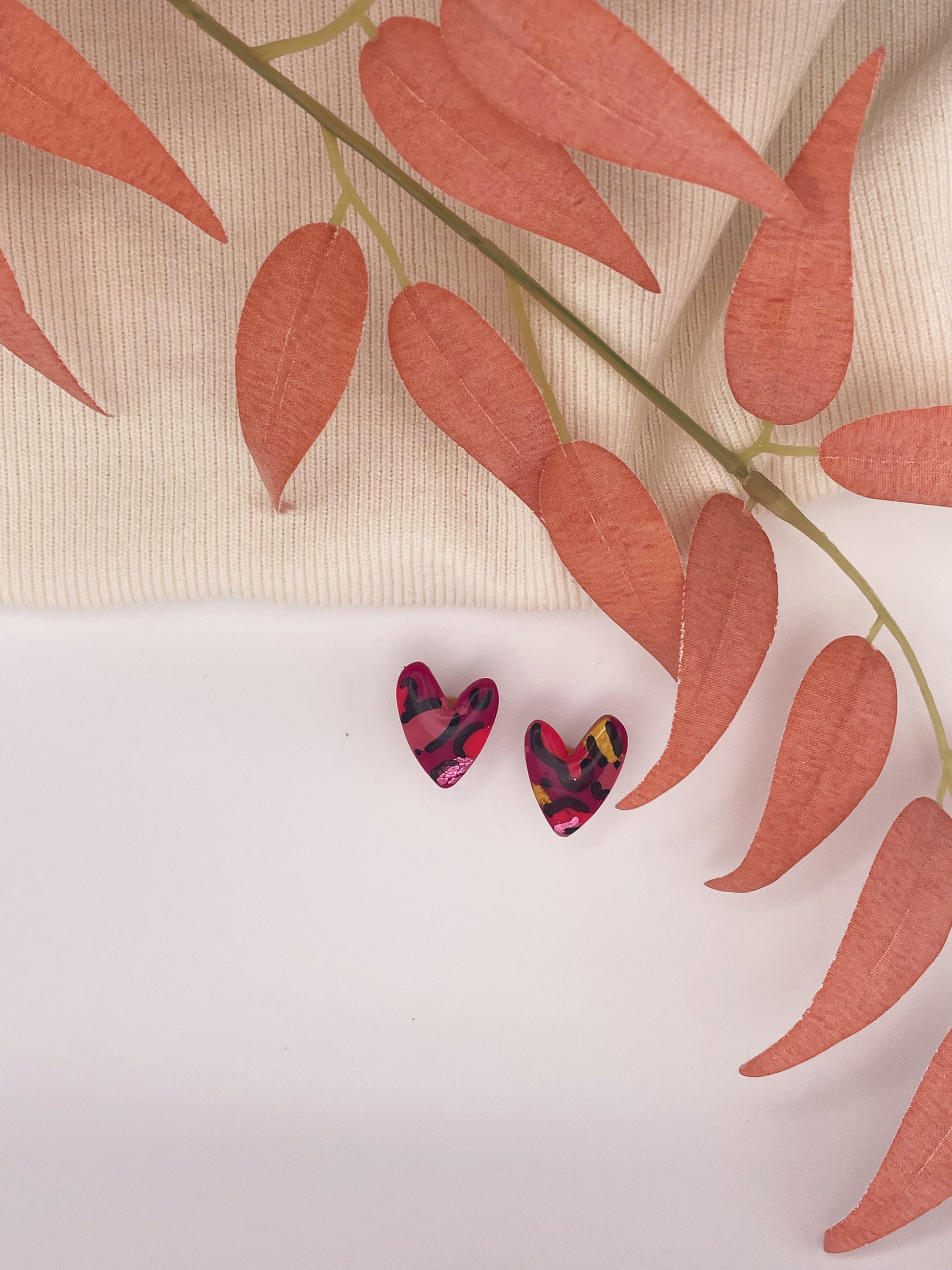 Les puces d’oreilles Désir Enflammé allient tendresse et audace dans une forme délicate de cœur. Ce design intemporel est rehaussé par un rose éclatant et des motifs léopard subtilement intégrés, pour un contraste harmonieux entre douceur et caractère. Parfaites pour un look chic et élégant, ces petites merveilles ajoutent une touche d’originalité à toutes vos tenues.