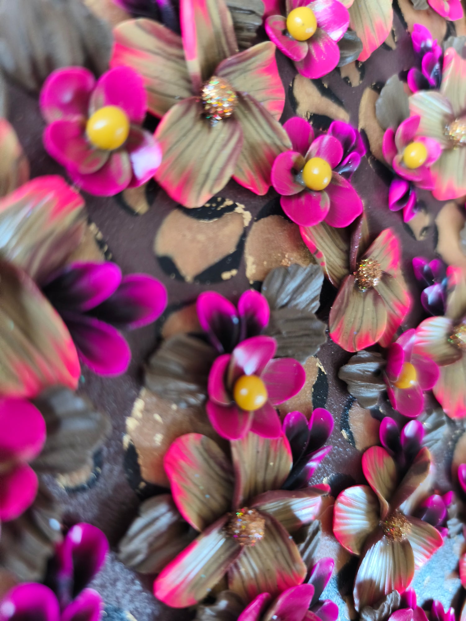 Le contraste du noir, du fuchsia et du doré pour des boucles audacieuses.