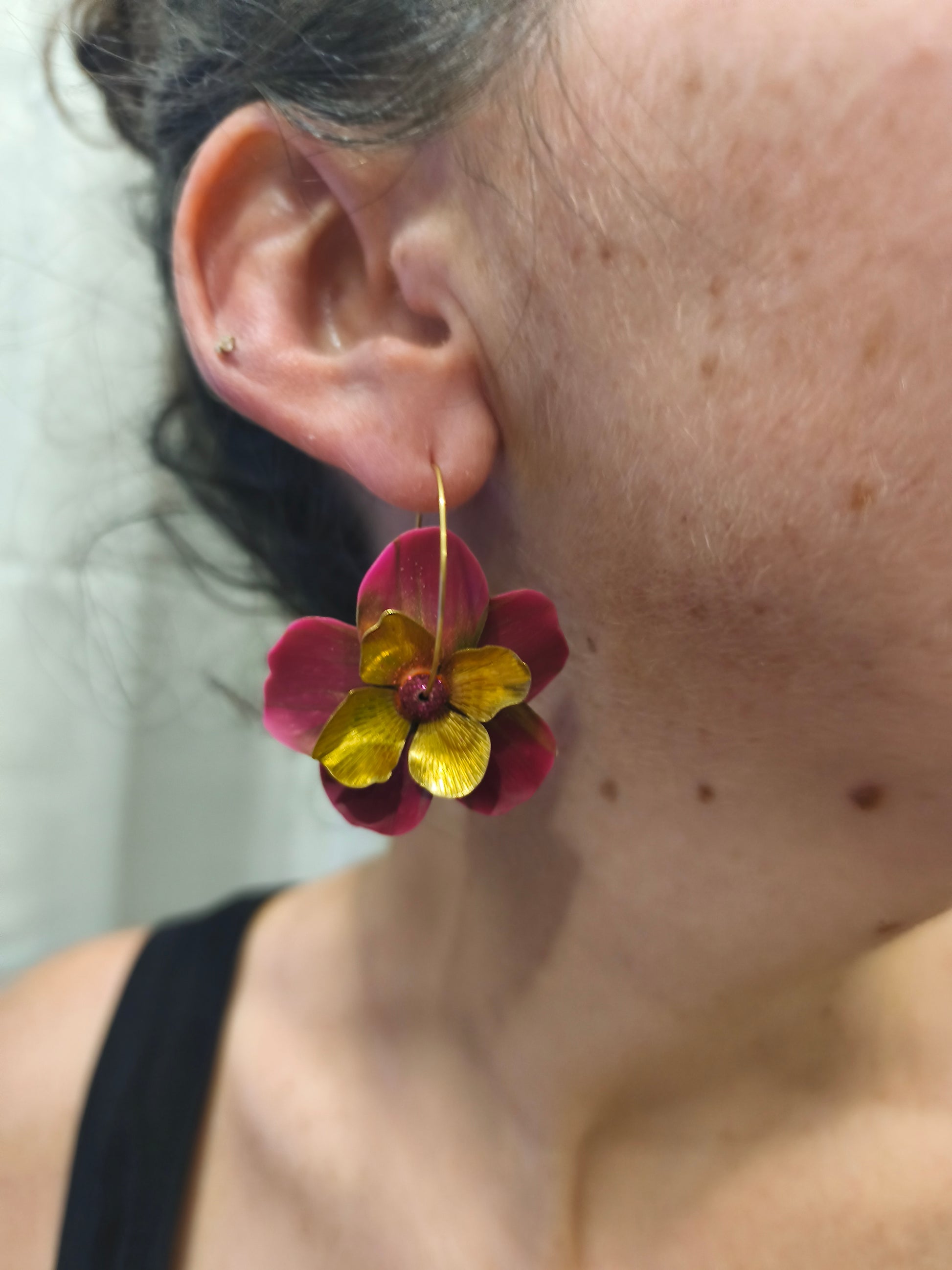 Fuchsia éclatant sur créole fine, élégantes au quotidien.