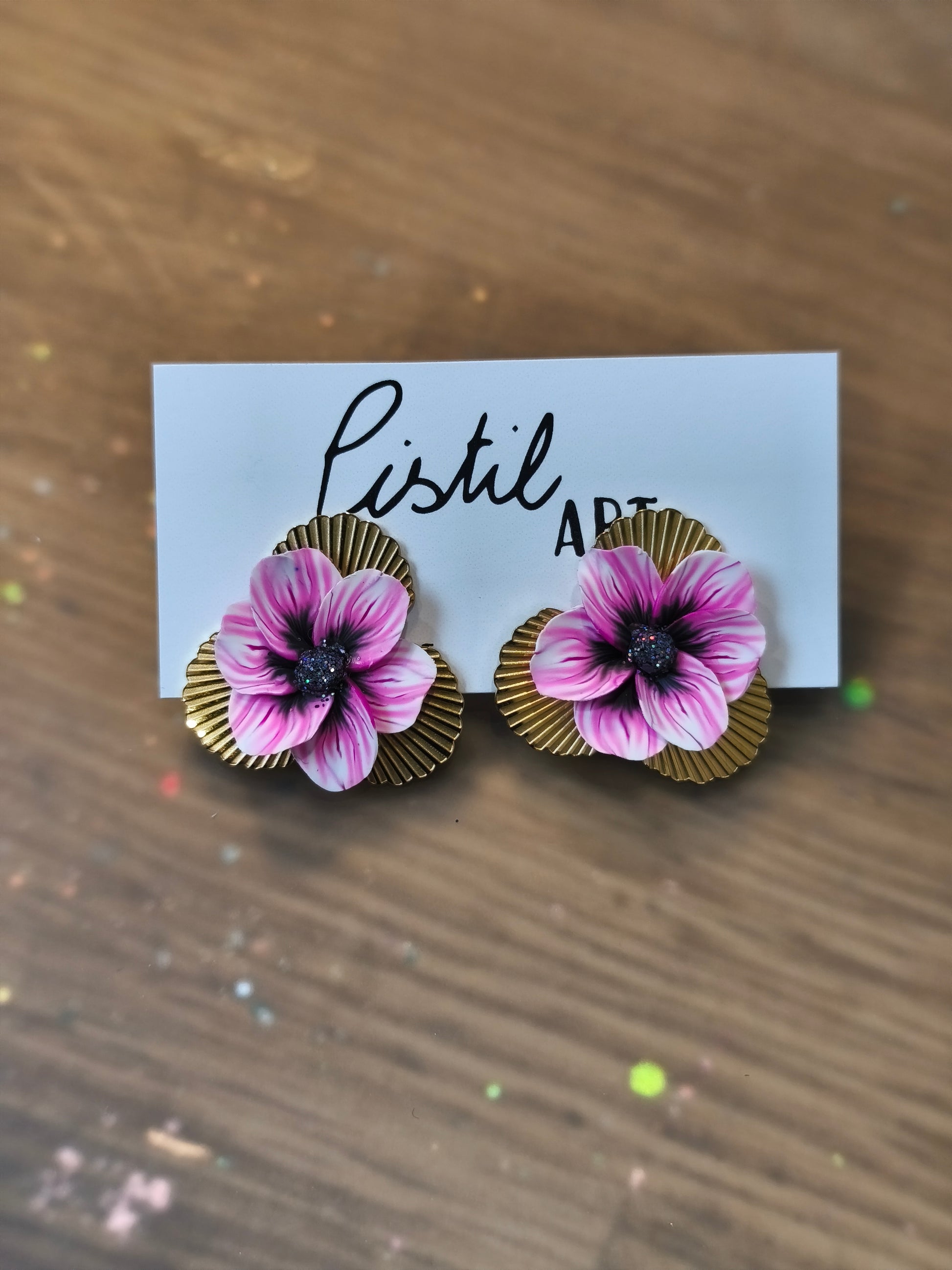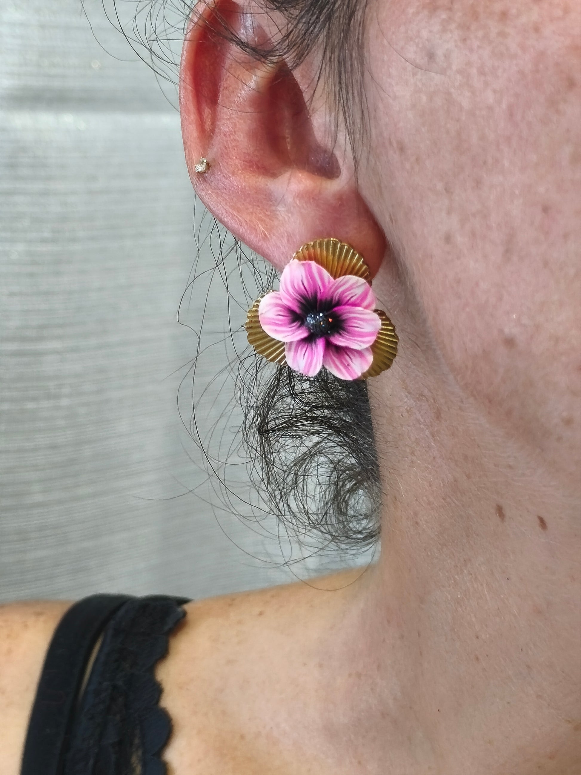 Des fleurs qui ne fanent jamais, à porter fièrement aux oreilles. Modelées à la main dans les couleurs rose, noir, blanc et des paillettes noires pour le coeur. Elles attirent les regards sans en faire trop, et se marient aussi bien avec une tenue sobre qu'un look plus affirmé. Un bijou poétique et audacieux, pensé pour celles qui aiment sortir du cadre.
