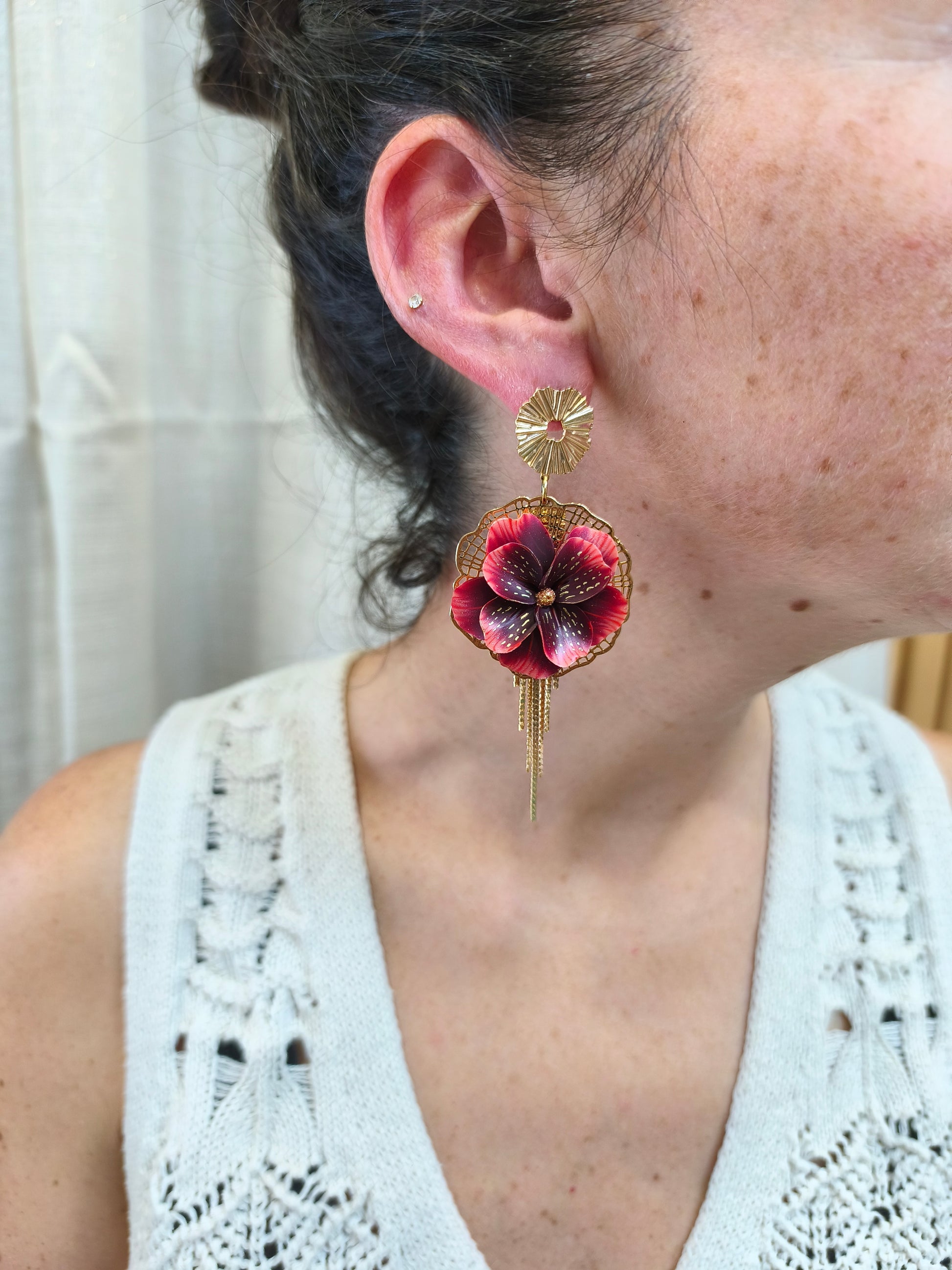 Modelées à la main dans un dégradé de marron, prune et doré avec un coeur à paillette doré, ces boucles allient originalité, légèreté et caractère.