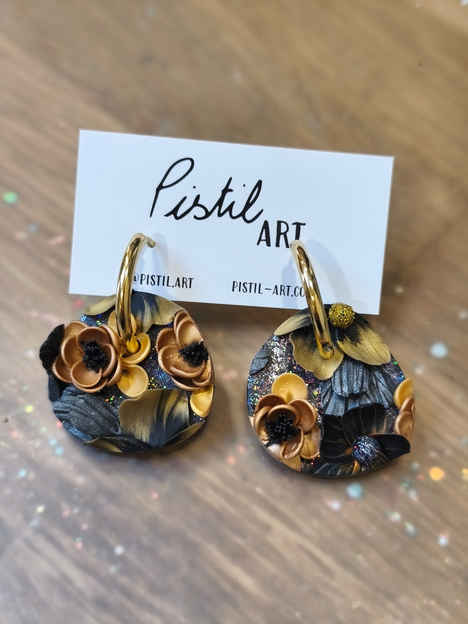 Des fleurs qui ne fanent jamais, à porter fièrement aux oreilles. Modelées à la main dans les tons noir et doré. Elles attirent les regards sans en faire trop, et se marient aussi bien avec une tenue sobre qu'un look plus affirmé. Un bijou poétique et audacieux, pensé pour celles qui aiment sortir du cadre.