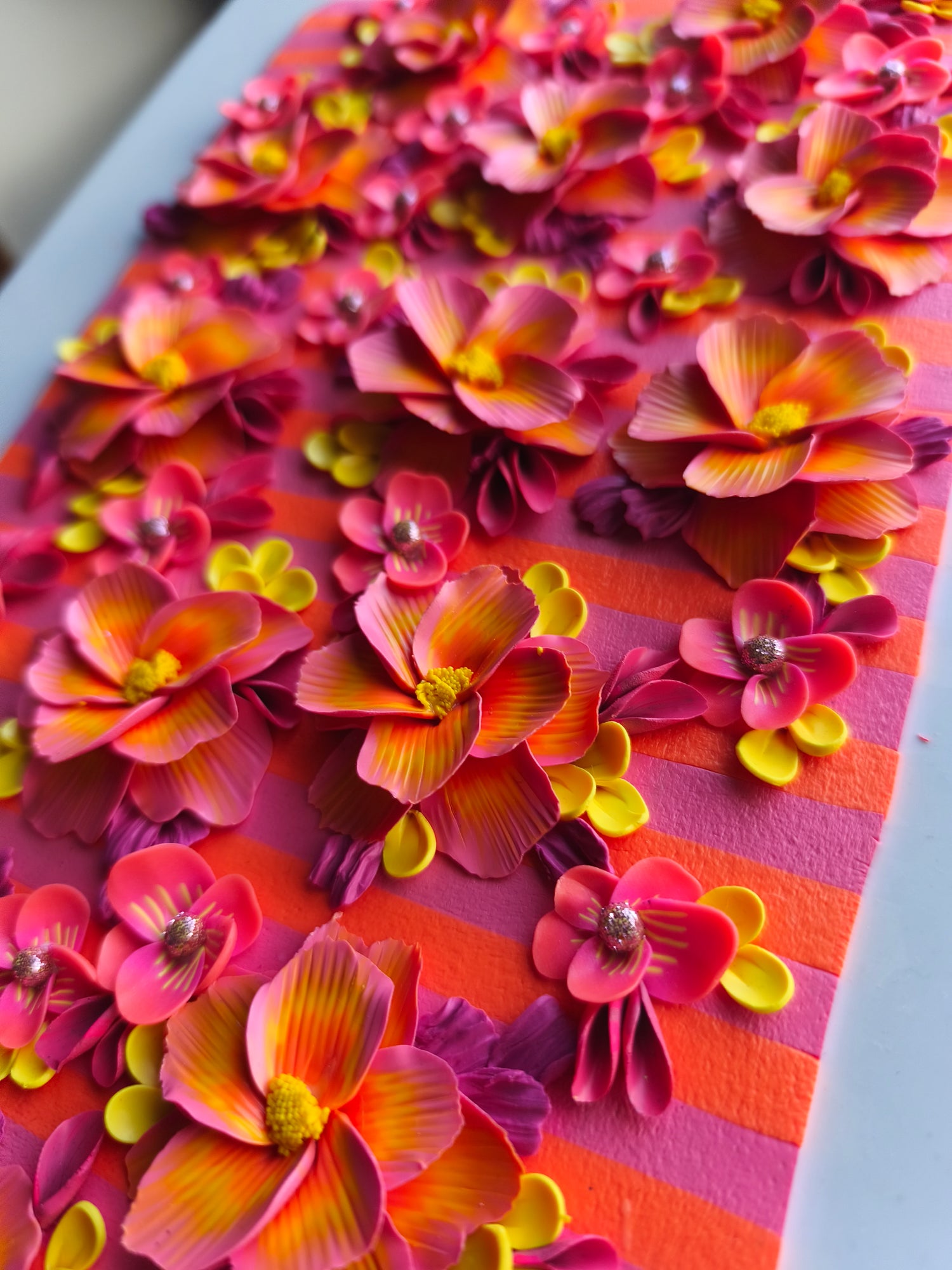 Chaque paire de Boucles d’oreilles fleur Coralie est fabriquée artisanalement avec soin. La pâte polymère permet de créer une fleur colorée et légère, tandis que la fleur en métal ajoute une note raffinée et structurée. Les couleurs corail et jaune apportent chaleur et luminosité, et le cœur à paillettes vient souligner le caractère du bijou. Ces boucles d’oreilles sont idéales pour celles qui aiment les créations florales, artisanales et confortables, faciles à porter au quotidien comme pour une occasion spéciale.