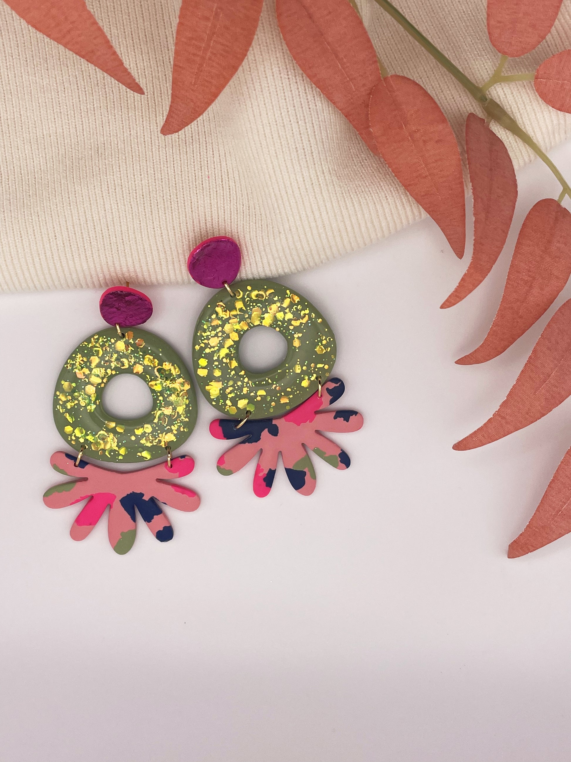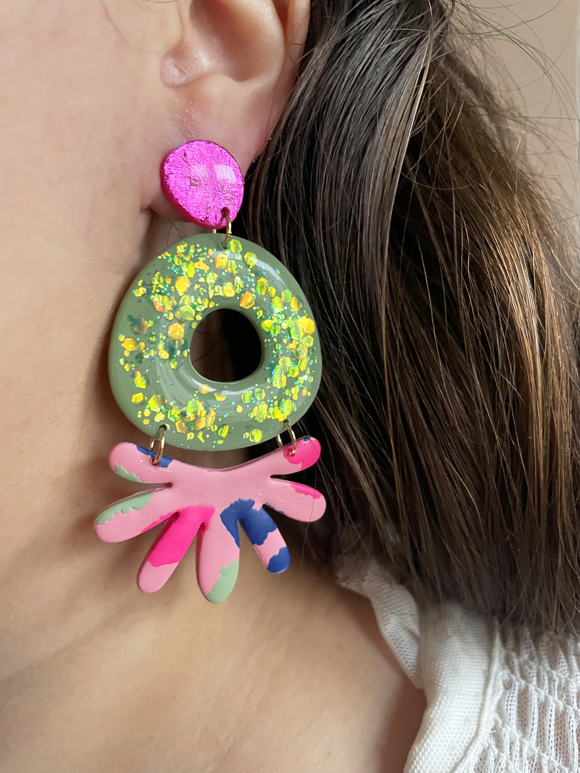 Fabrication artisanale : Chaque boucle est créée à la main en pâte polymère et résine, garantissant un style unique et un travail minutieux.